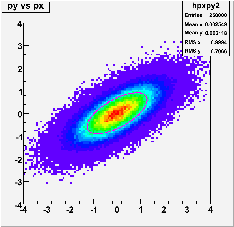 Fit an ellipse as contour line to a 2-dim histogram | |