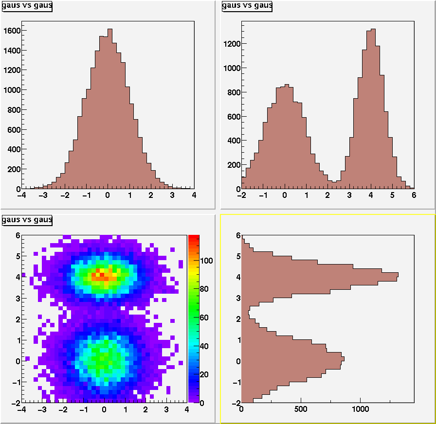 Draw 2-dim histogram together with projX and projY | |